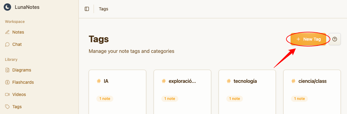 Your new tag will now appear in your Tag Library and can be used across your notes, videos, diagrams, and flashcards.