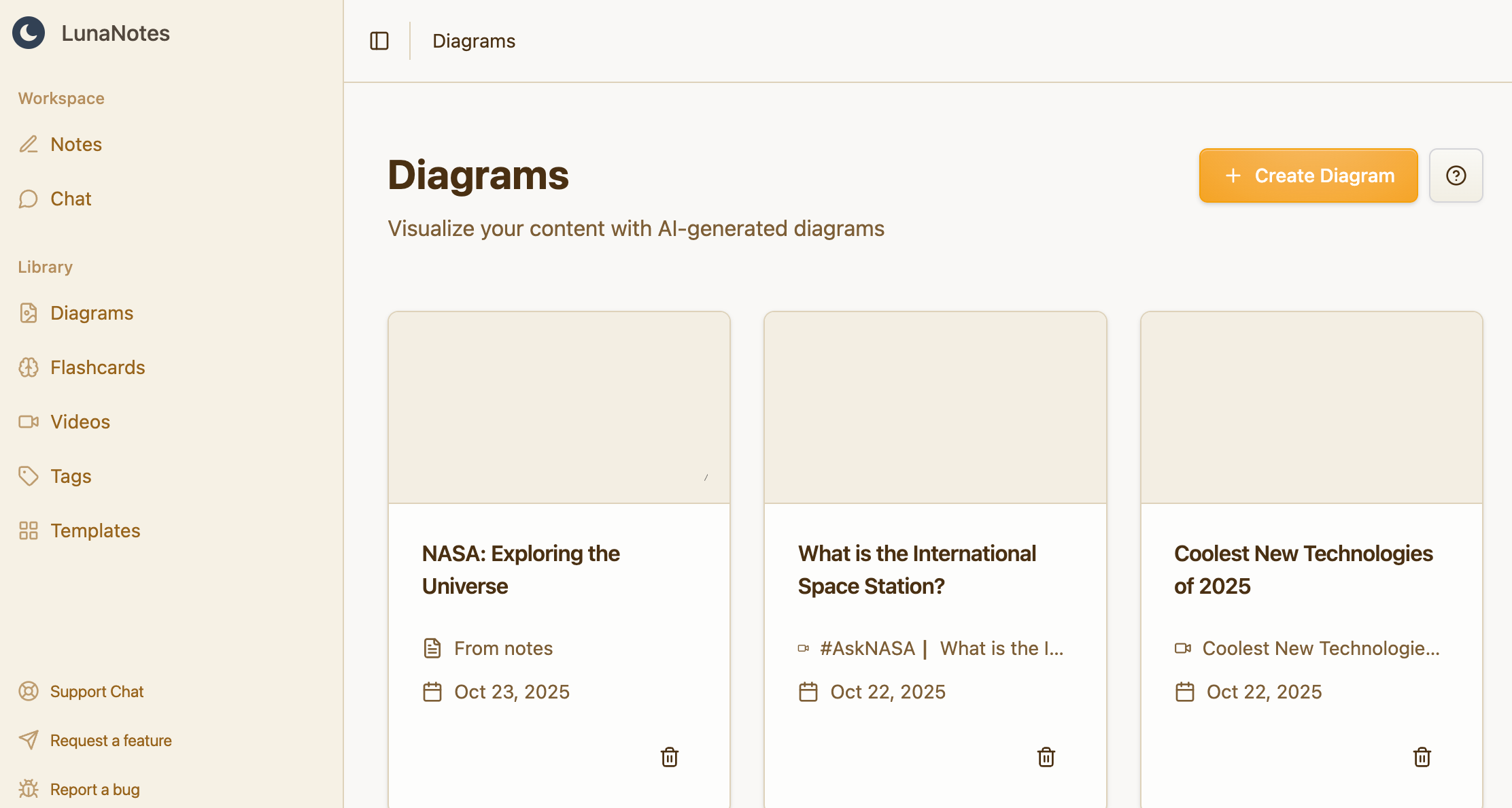 Once a diagram is generated β either from a video or from your notes β it becomes a static visual representation of your content.
