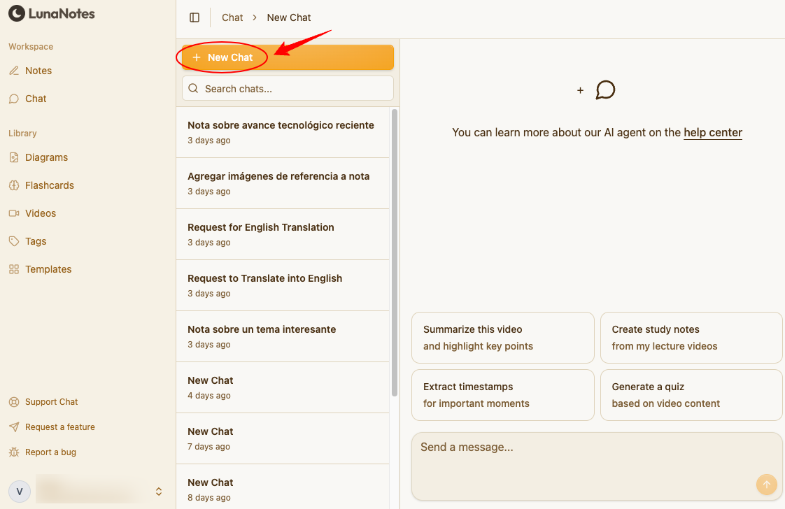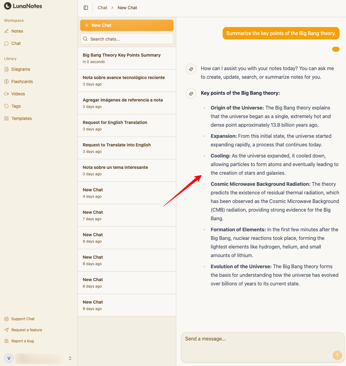 The AI Chat in LunaNotes is your personal learning and productivity assistant.