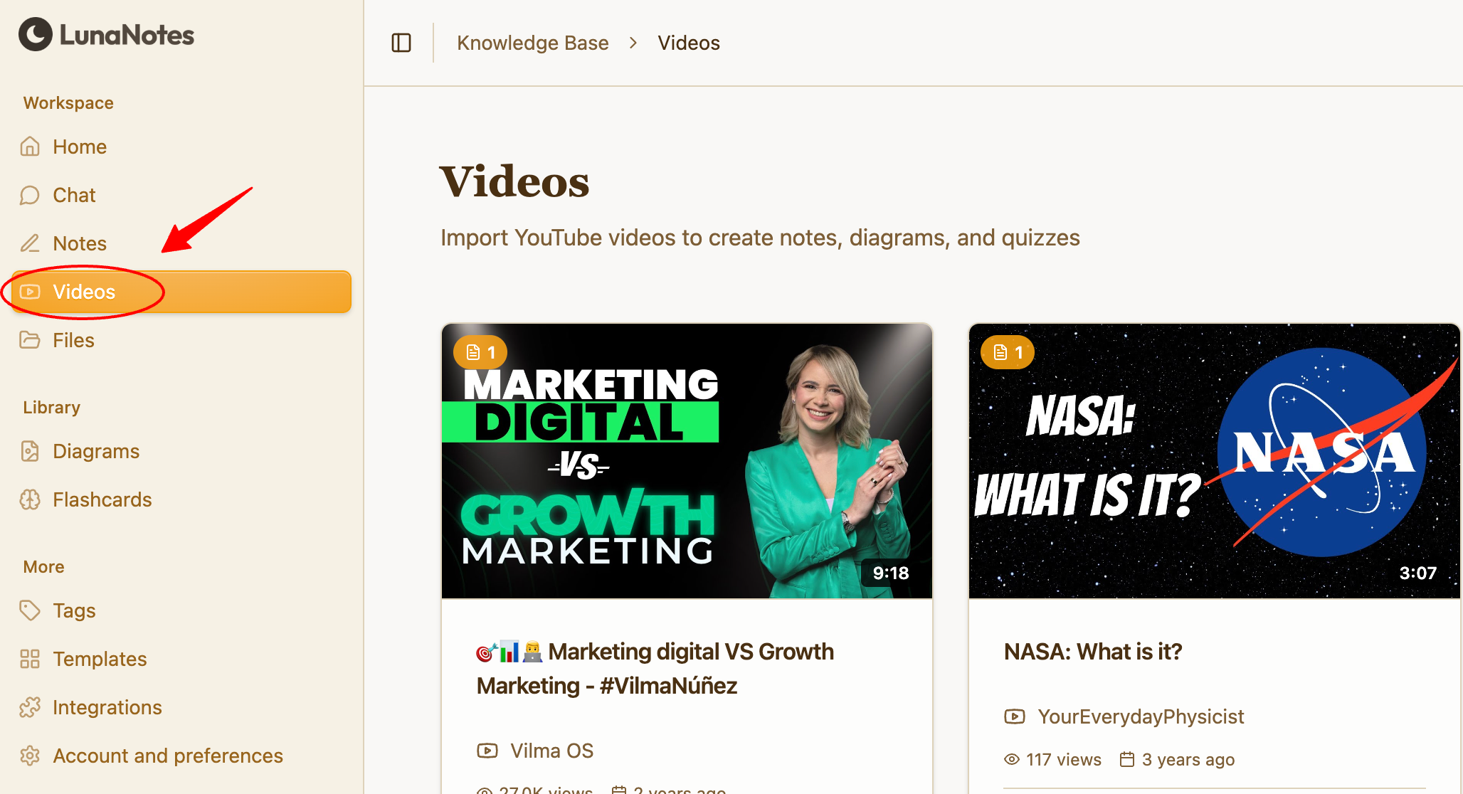 Open a YouTube video that you’ve already imported or paste a YouTube URL to add a new video.