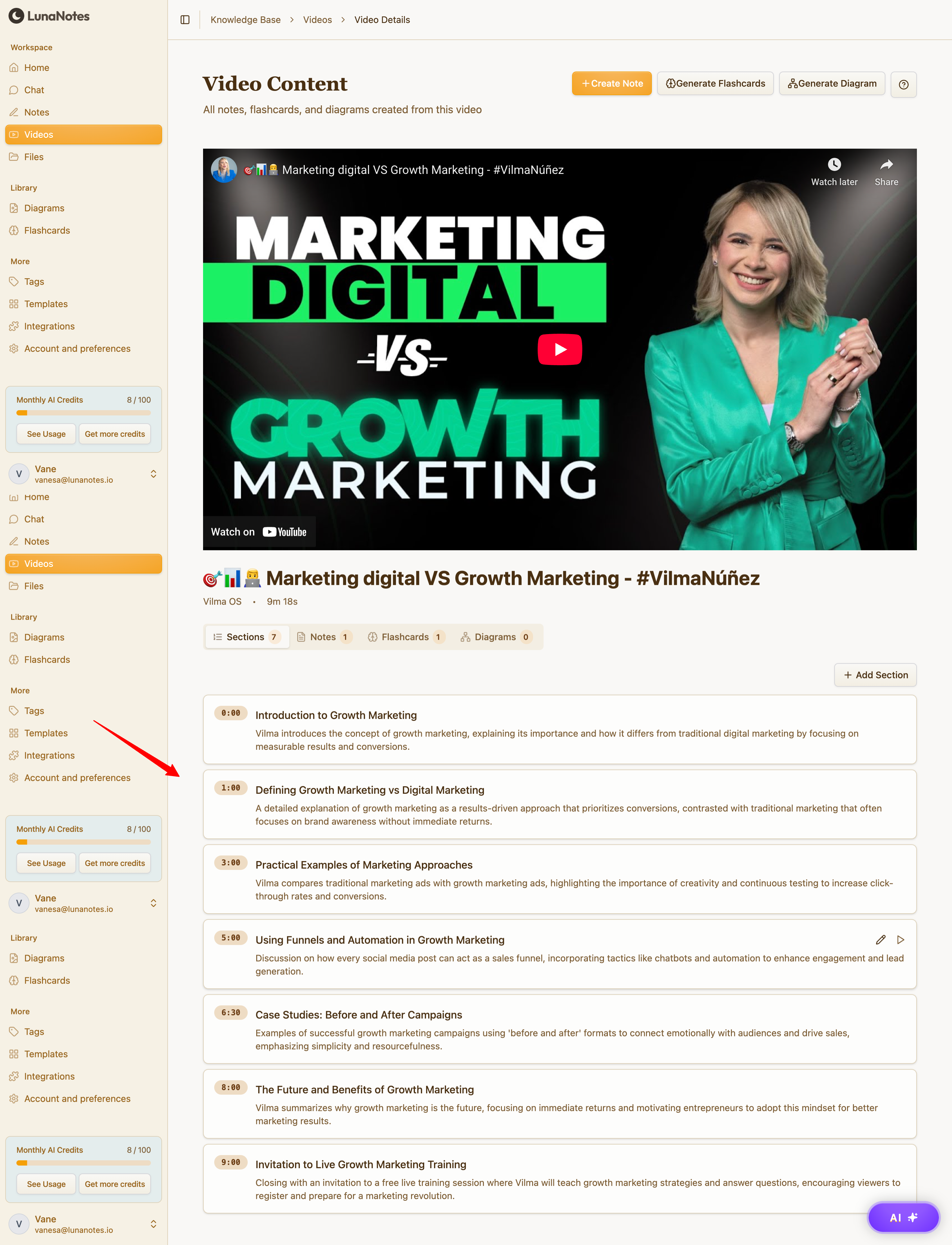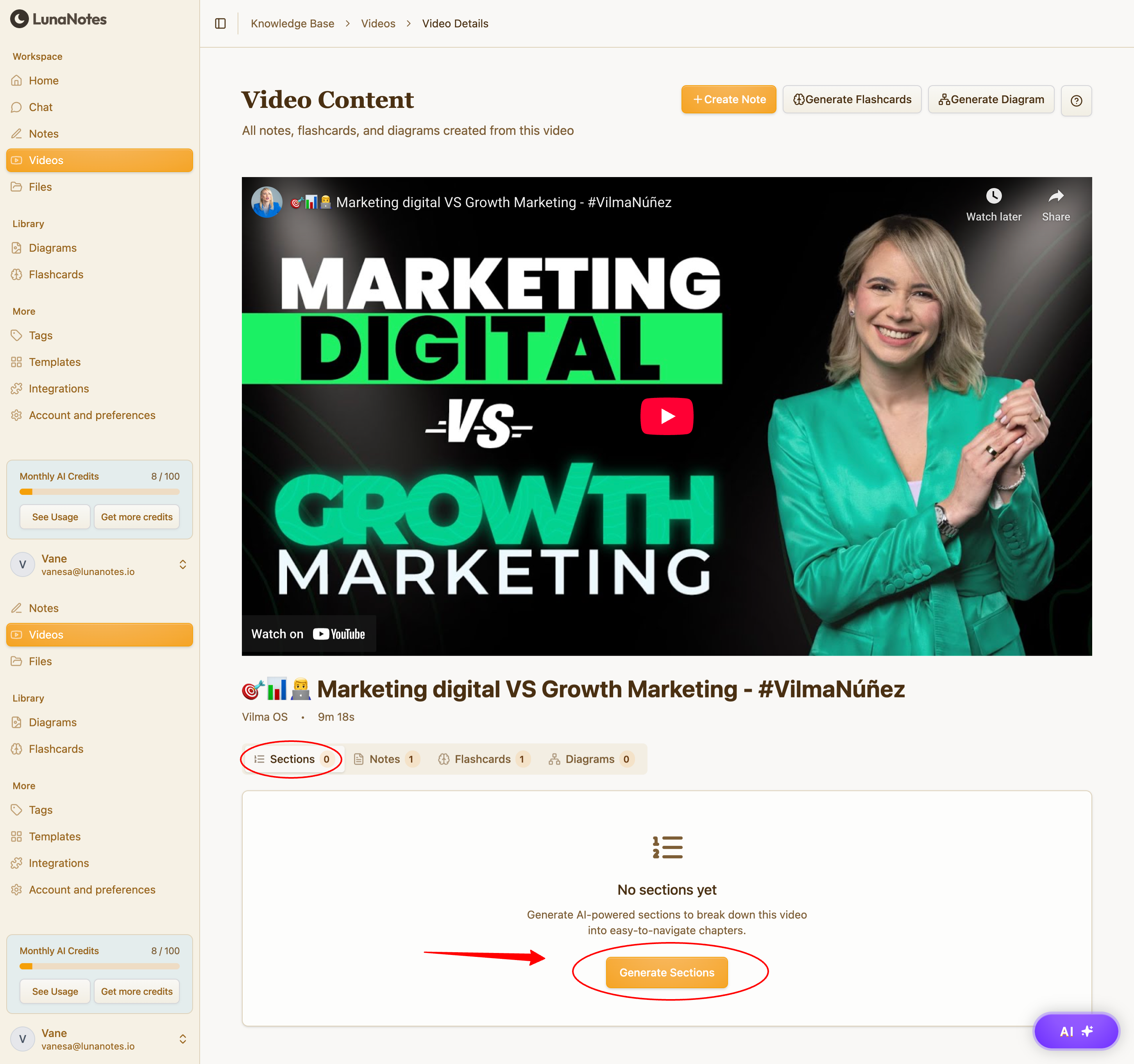 Generated sections with timestamps are especially useful for long videos, lectures, and tutorials—helping you review and navigate content much faster.