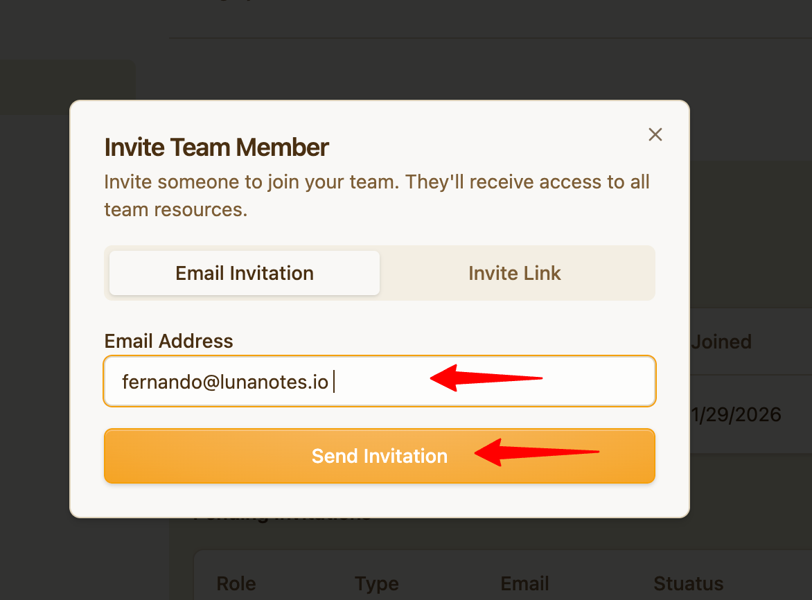 Invite members using their email address.