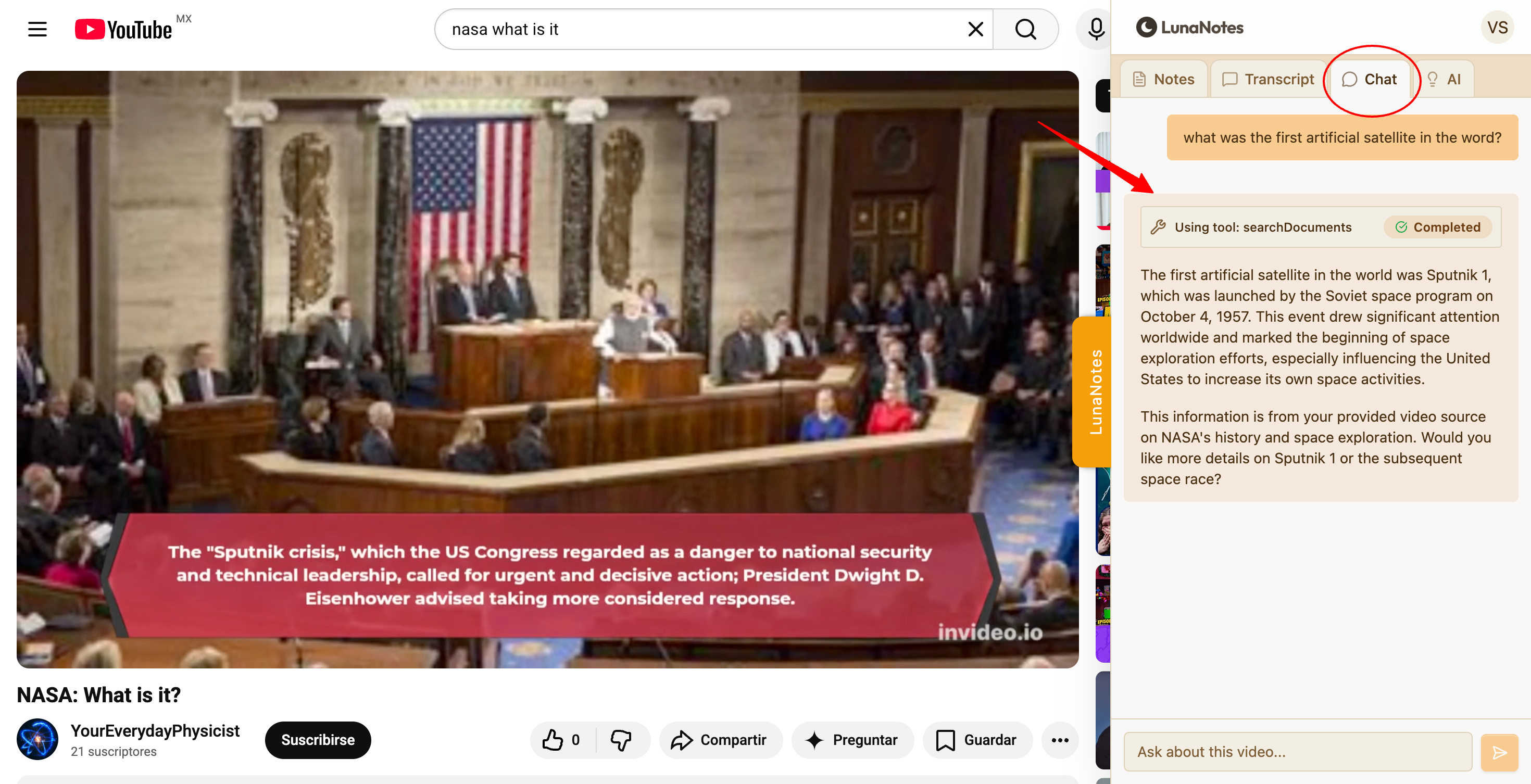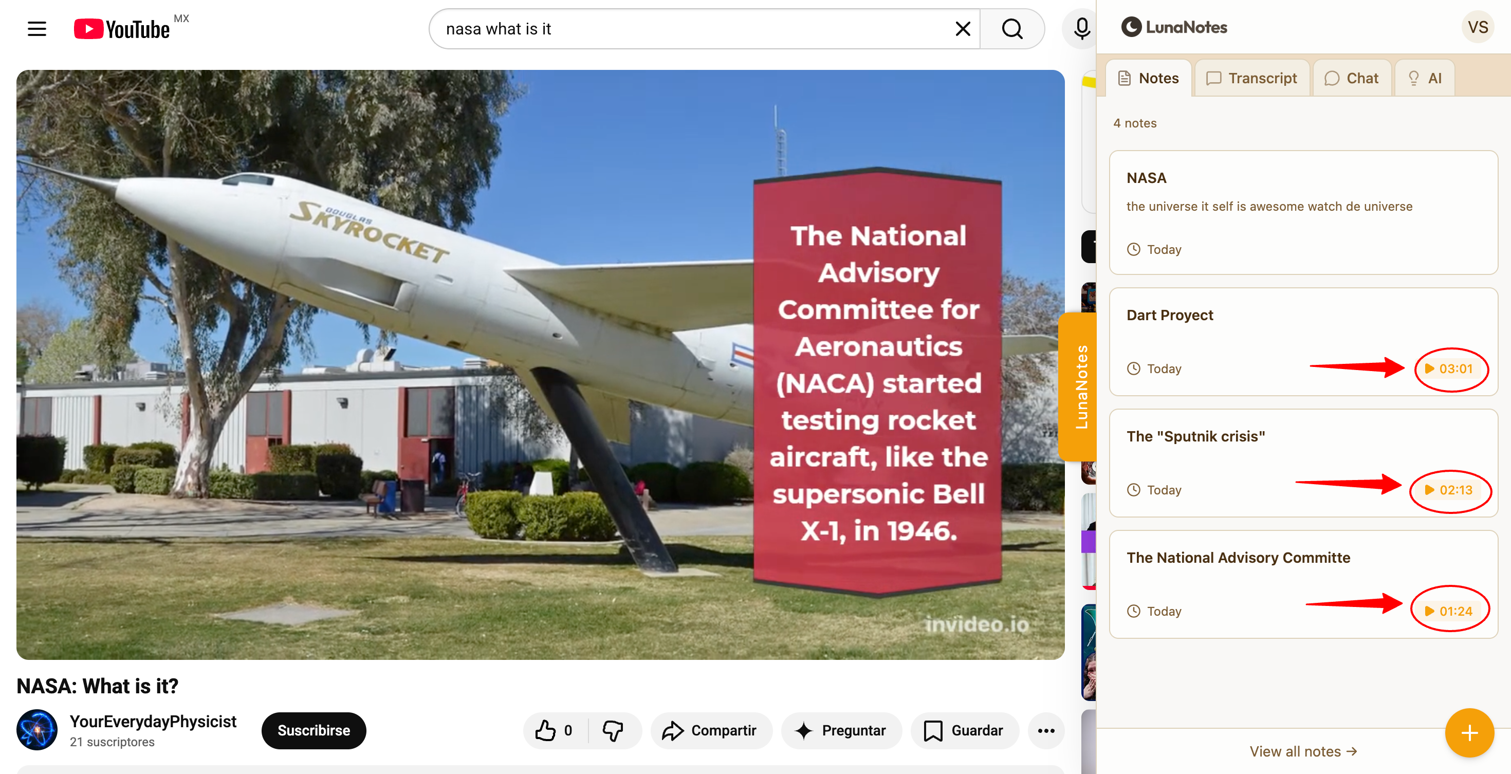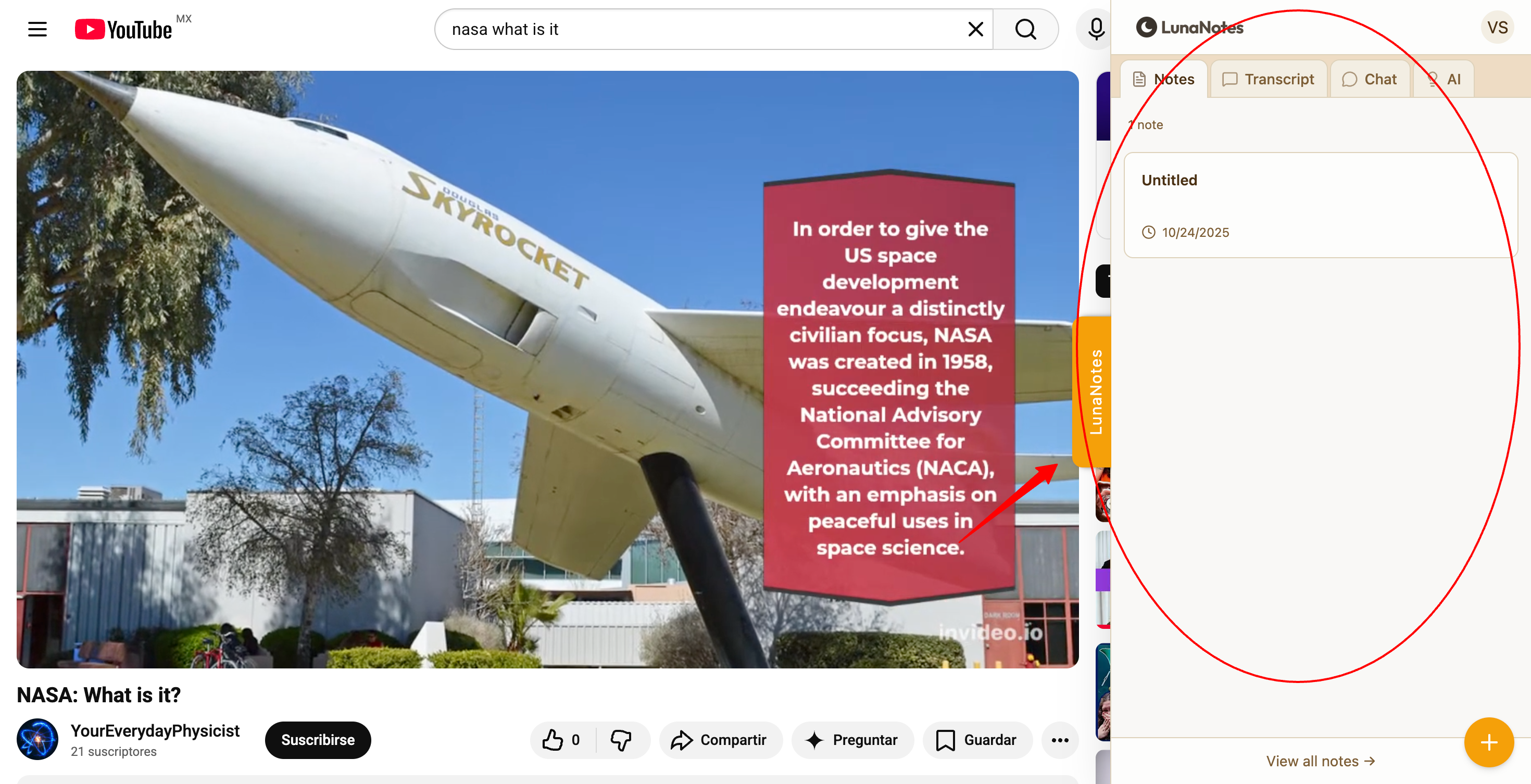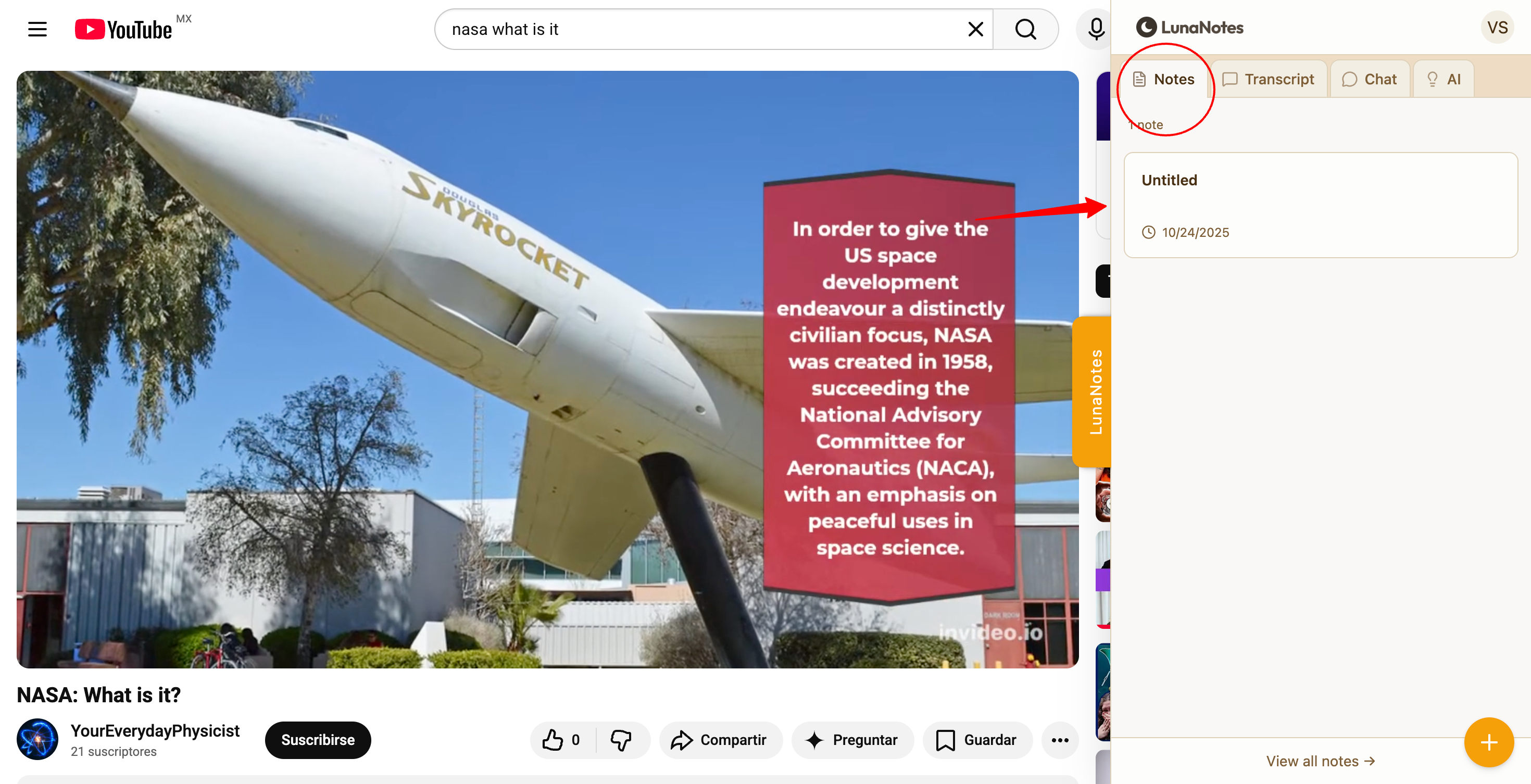 The LunaNotes YouTube Extension allows you to take notes and use AI tools directly while watching YouTube videos. Once installed and connected, the extension appears automatically on supported YouTube video pages.